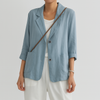 Veredeln Sie Ihre Sommergarderobe mit diesem lässig geschnittenen Blazer aus Naturfasern. Er bietet atmungsaktiven Komfort und zeitlosen Stil. Der leichte, dünne Stoff macht ihn ideal für warmes Wetter und verleiht eine elegante Silhouette, ohne aufzutragen. Der strukturierte und dennoch entspannte Schnitt wurde speziell für Frauen mittleren Alters entworfen und ermöglicht einfaches Layering und einen eleganten Alltagslook.