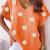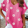 V-Ausschnitt T-Shirt mit 3D-Blumenprint
