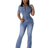 Blaues Denim-Jumpsuit für Damen mit geraden Beinen und langen Ärmeln