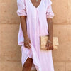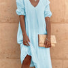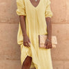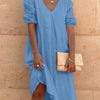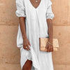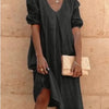 ✔️ V-Ausschnitt mit Knopfdetails – Betont das Dekolleté und verleiht dem Kleid einen stilvollen Akzent.