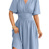 Blaues Midikleid mit V-Ausschnitt und kurzen Ärmeln