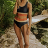 Setzen Sie in dieser Saison ein elegantes Statement mit diesem schwarzen Colorblock-Bikini-Set, das für selbstbewusste Strandtage und entspannte Momente am Pool konzipiert wurde. Der Bandeau-Ausschnitt und der stylische Rückenausschnitt sorgen für eine moderne, schmeichelhafte Silhouette, die sowohl gewagt als auch bequem ist.