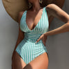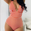 Gestreifter Neckholder-Badeanzug für Damen