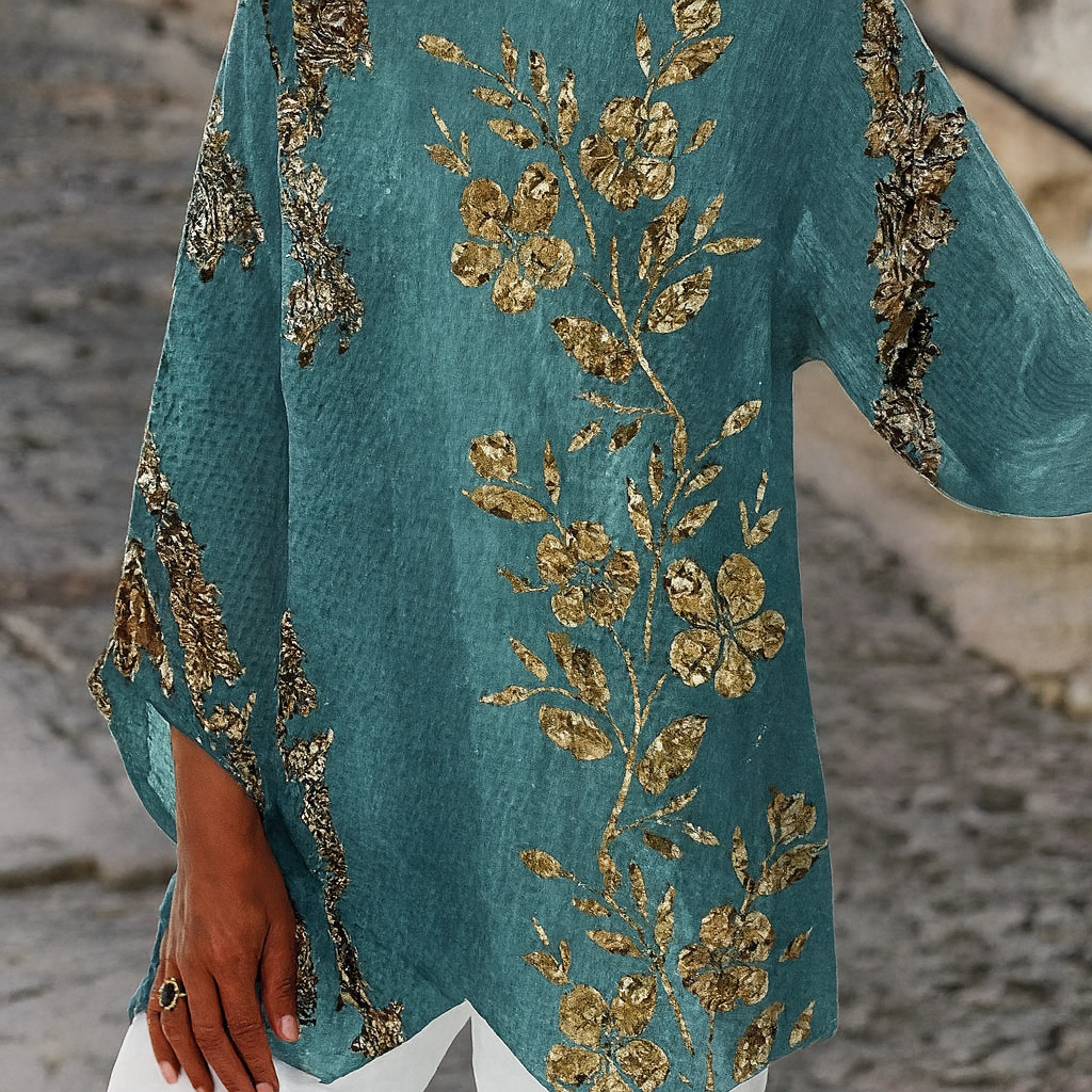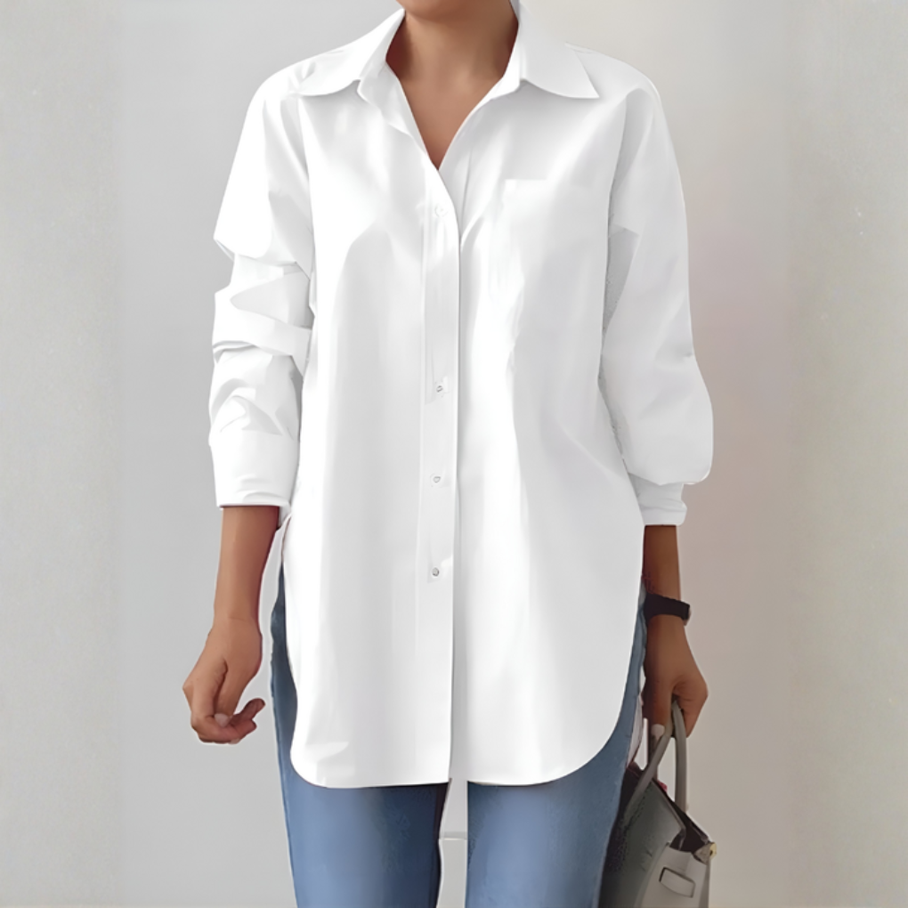 Vintage-Leinenbluse für Damen mit Oversize-Passform und klassischem Kragen