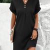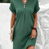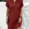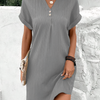 Genießen Sie mühelosen Sommerstil mit diesem leichten, locker sitzenden Kleid. Mit schmeichelndem V-Ausschnitt und charmanten Knopfdetails bietet es die perfekte Mischung aus Komfort und lässiger Eleganz für sonnige Tage und entspannte Ausflüge.