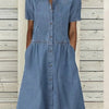 Denim-Midikleid mit Knopfleiste und kurzen Ärmeln