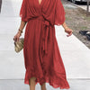 Das Kleid ist ein zeitloses Stück, das mühelos Eleganz und Komfort vereint. Es schmeichelt jeder Figur und eignet sich perfekt für verschiedene Anlässe, von Hochzeiten bis hin zu eleganten Abendessen.