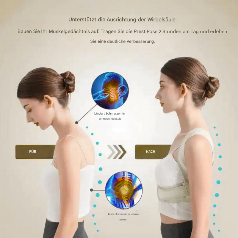 Ein versteckter Haltungskorrektor, der eine aufrechte Position des Rückens und der Schultern beim Sitzen, Stehen oder Bewegen fördert.