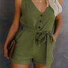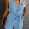 Starten Sie selbstbewusst in die Saison mit diesem luftigen, einfarbigen Jumpsuit, der für stilvollen Komfort entworfen wurde. Mit seinem schmeichelhaften Ausschnitt und den verspielten Five-Point-Shorts ist er perfekt für sonnige Tage, Stadtbummel oder zwanglose Treffen.