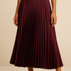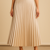 Der Rock kombiniert luxuriösen Glanz mit zeitloser Eleganz. Sein fließendes Satinmaterial und die feinen Plisseefalten verleihen jedem Outfit eine feminine Note.