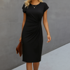 Verleihen Sie Ihrer Sommergarderobe mit diesem schicken, einfarbigen Kleid einen Hauch von modernem Flair. Mit schmeichelhaftem O-Ausschnitt, asymmetrischem Saum und verstellbarer Schnürung in der Taille verbindet es Komfort mit Selbstvertrauen für sonnige Tage und legere Anlässe.