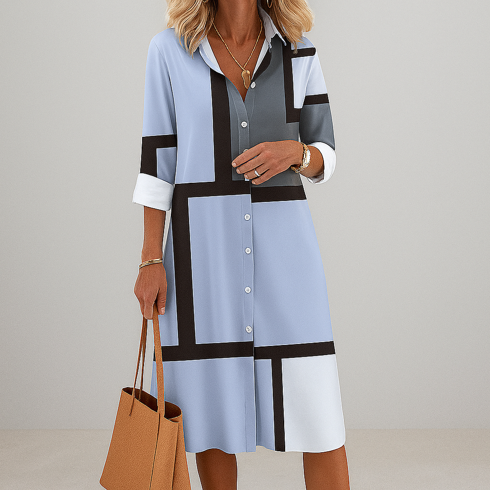 Hemdblusenkleid mit geometrischem Muster für Damen