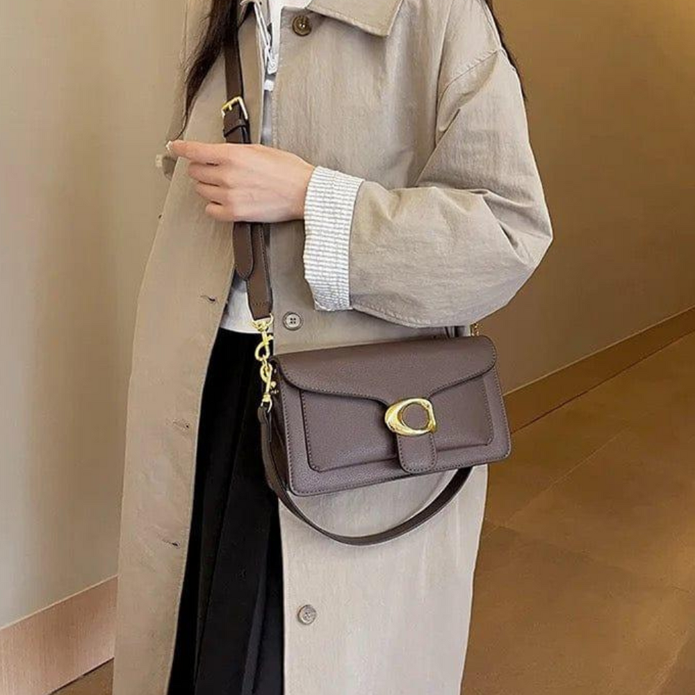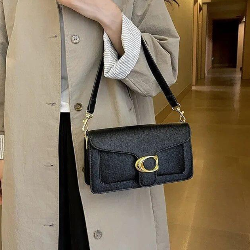 Klassische strukturierte Umhängetasche mit goldfarbener Schnalle