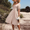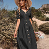 Erweitern Sie Ihre Sommergarderobe mit diesem Kleid – einer perfekten Mischung aus Komfort und zeitlosem Stil. Das Kleid aus atmungsaktiver Baumwolle besticht durch seinen schmeichelnden V-Ausschnitt und die entspannte Passform und eignet sich ideal für legere Ausflüge und halbformelle Anlässe.