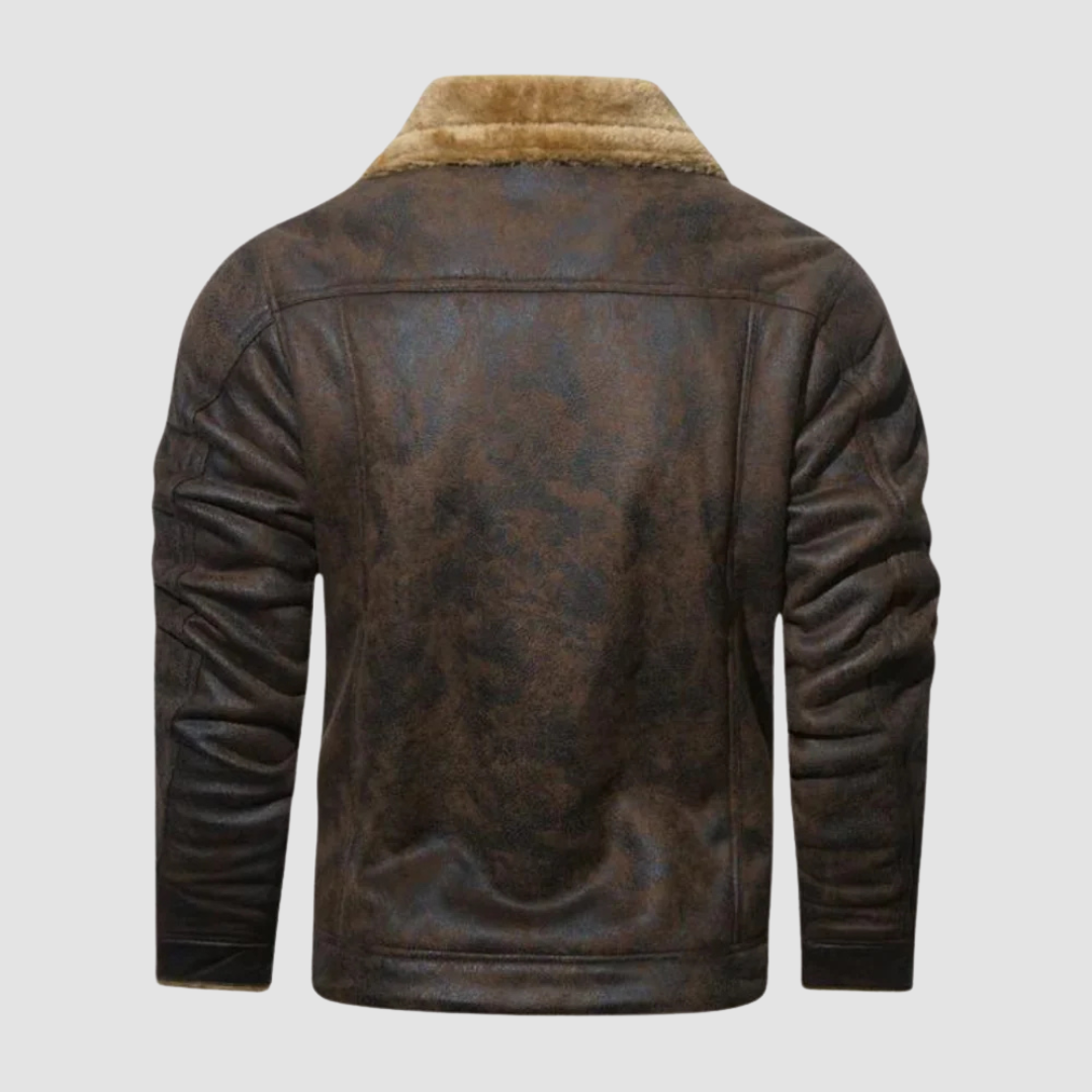 Begrüßen Sie die kälteren Jahreszeiten mit der Winter-Bomberjacke – einer perfekten Mischung aus Vintage-Piloten-Ästhetik und modernem Komfort. Diese Jacke aus tierfreundlichem Kunstleder und dickem Fleecefutter sorgt für Wärme, ohne Kompromisse beim Stil einzugehen.