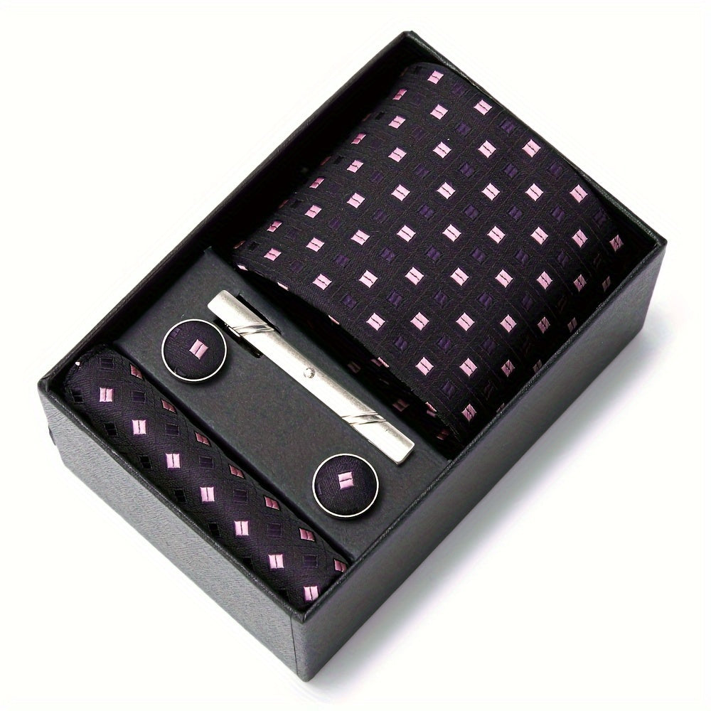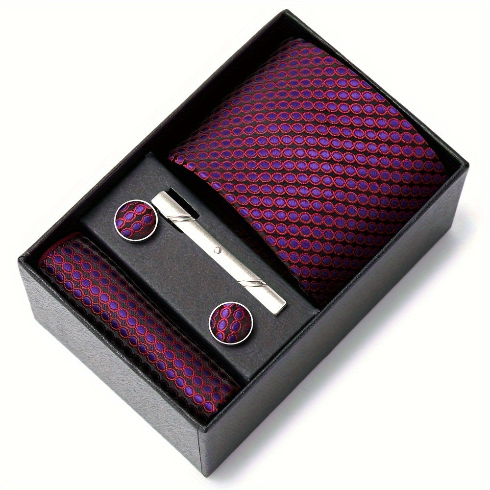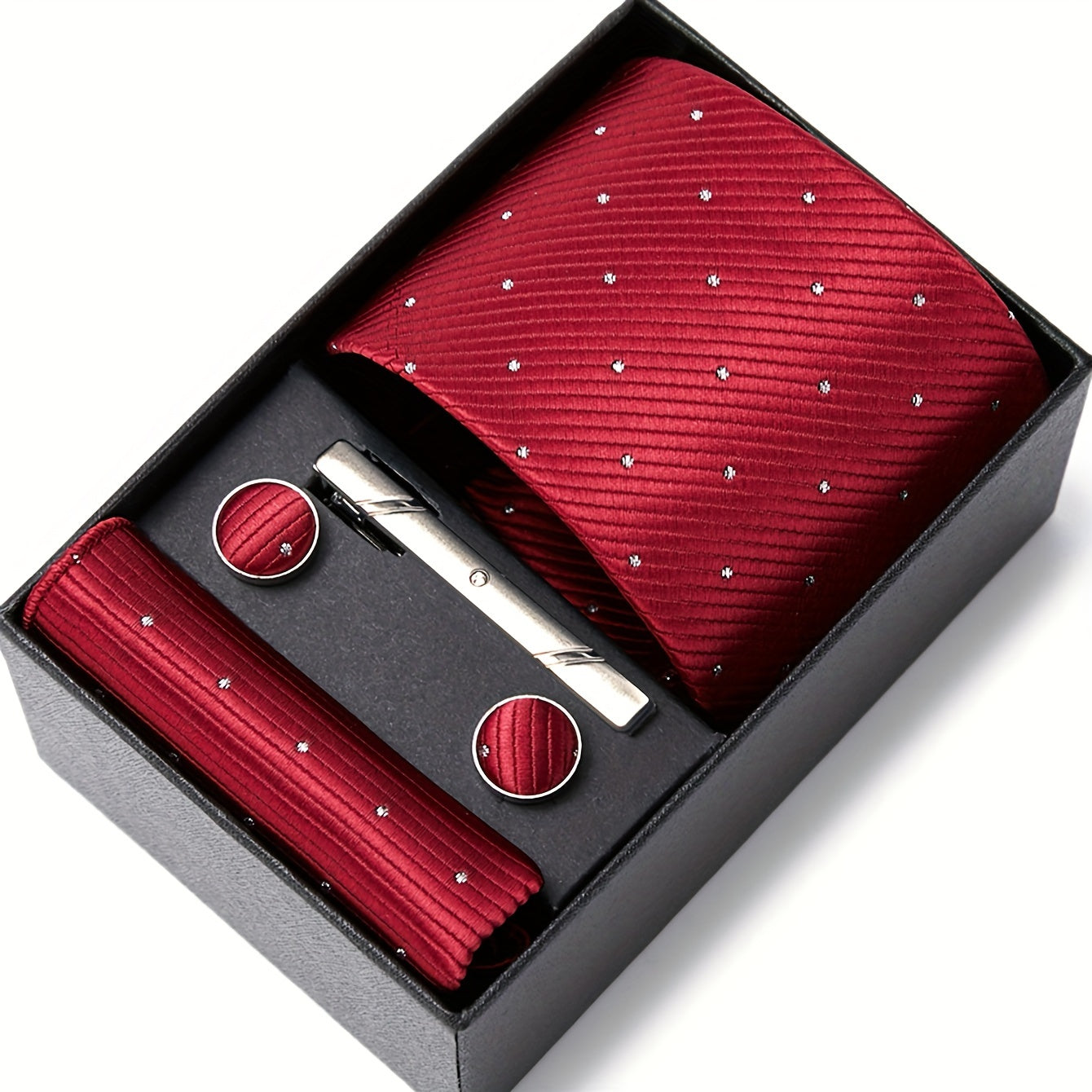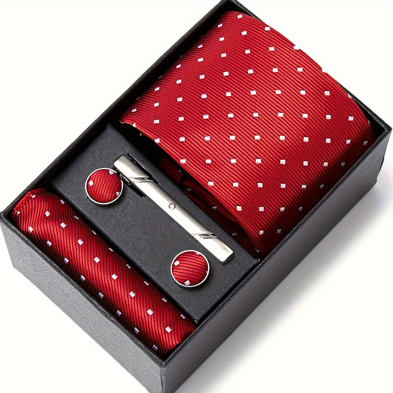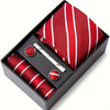3-teiliges Set mit roter Krawatte, Einstecktuch und Manschettenknöpfen