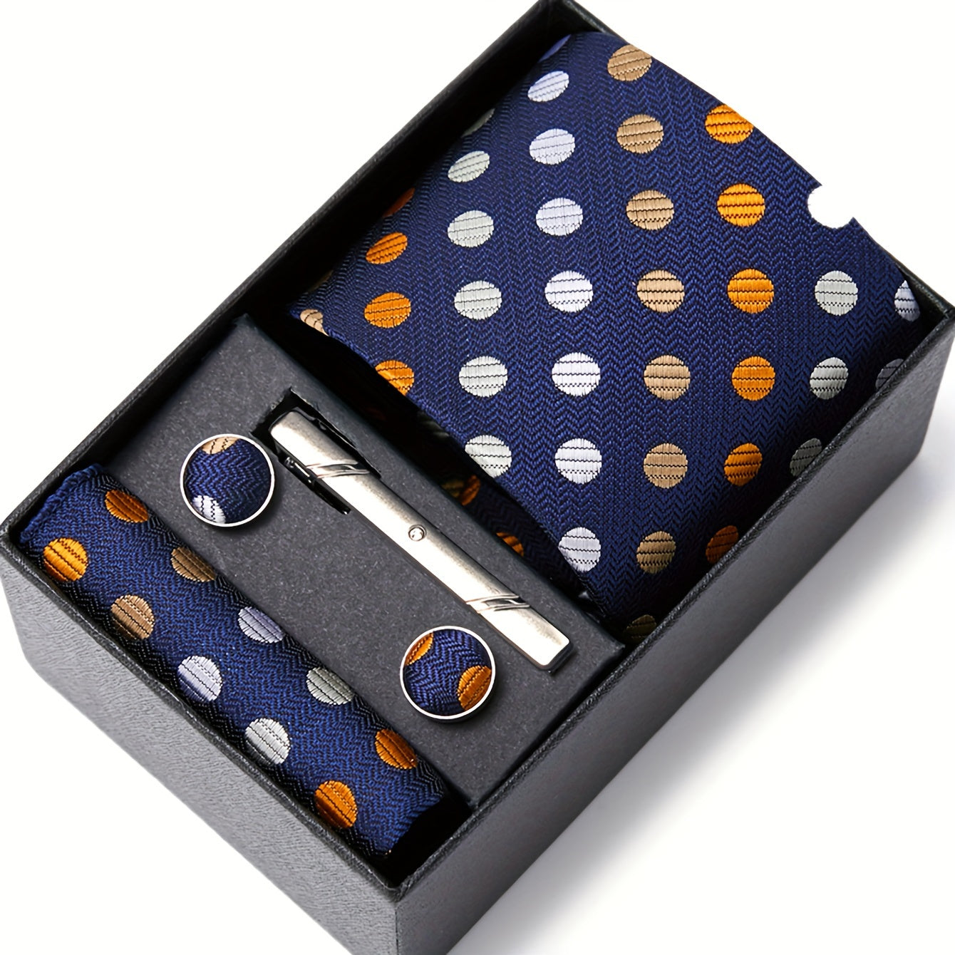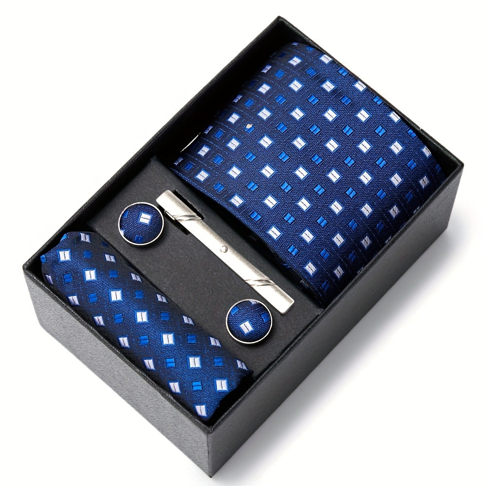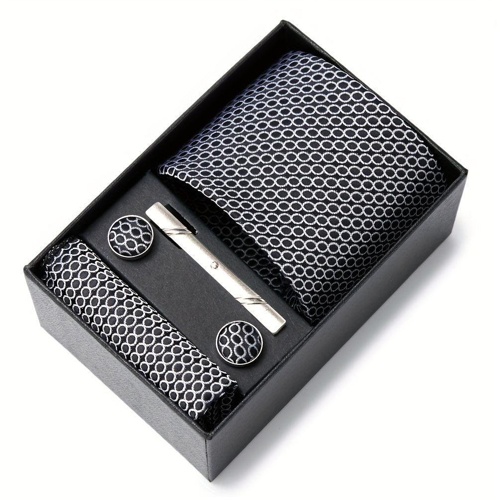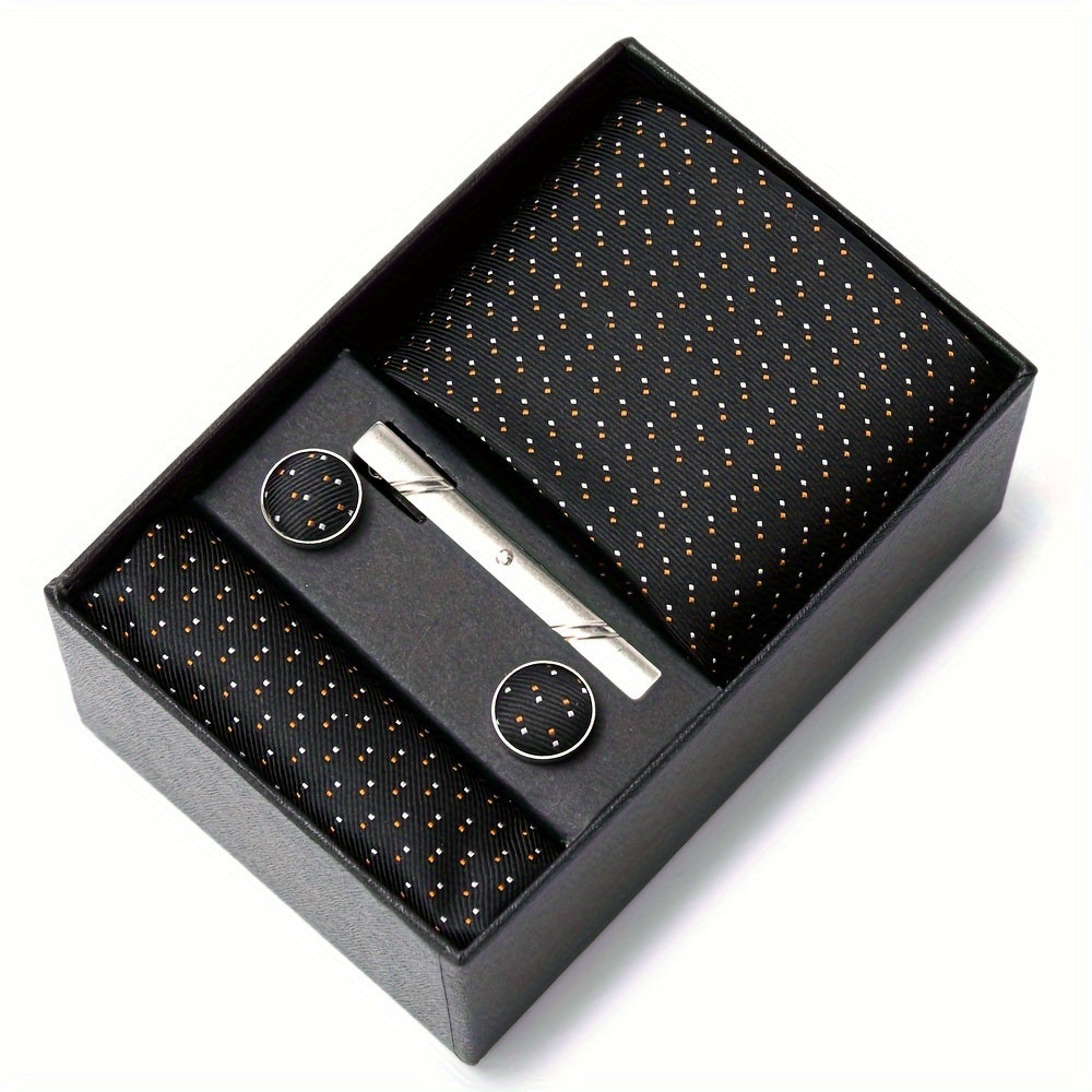 3-teiliges Set mit roter Krawatte, Einstecktuch und Manschettenknöpfen