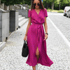 Erfrischen Sie Ihren Sommerstil mit diesem hoch taillierten Damenkleid mit Schnürung, das Streetwear-Flair mit anmutiger Eleganz verbindet. Das Kleid aus leichtem, atmungsaktivem Polyester mit leichtem Stretch besticht durch einen schmeichelnden, überkreuzten V-Ausschnitt und eine A-Linien-Silhouette bis zur Wade, die wunderschön fällt und gleichzeitig bequemen Tragekomfort bietet.